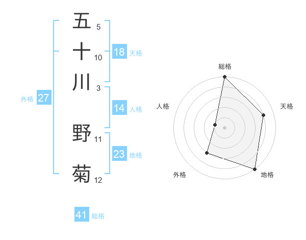 五十川 野菊さんを姓名の画数から五運を鑑定