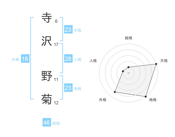 寺沢 野菊さんの天格は23画の5点!
