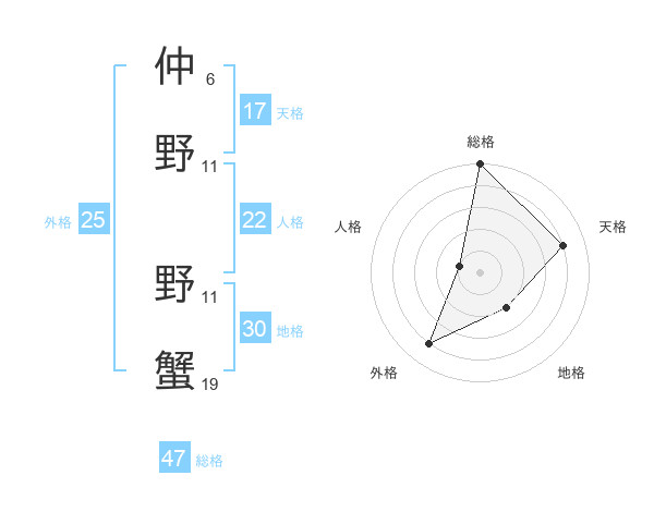 仲野 野蟹さんを姓名の画数から五運を鑑定