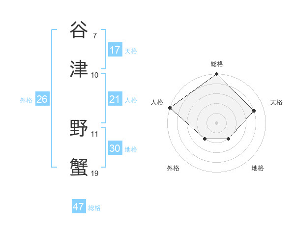 谷津 野蟹さんの総格は47画の5点!