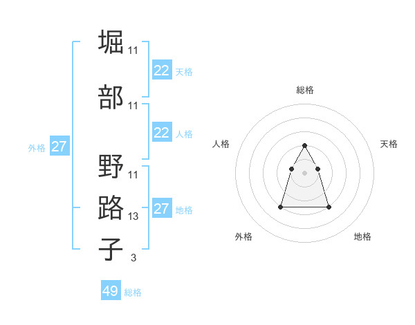 堀部 野路子さんを姓名の画数から五運を鑑定