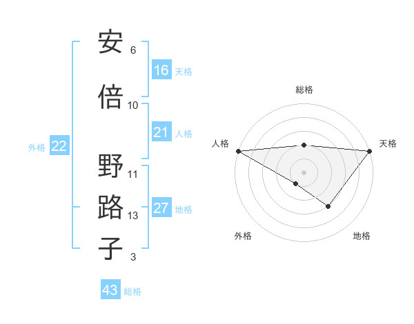 安倍 野路子さんを姓名の画数から五運を鑑定