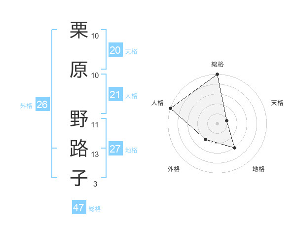 栗原 野路子さんを姓名の画数から五運を鑑定