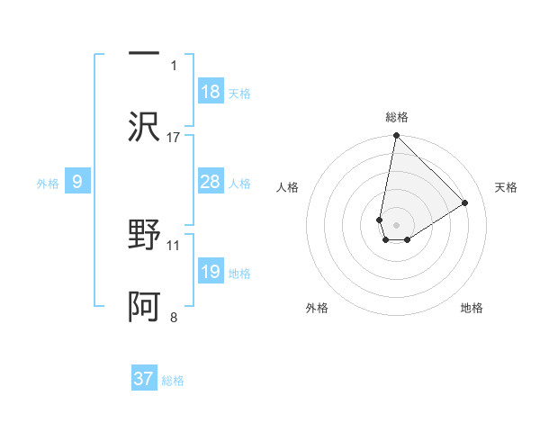 一沢 野阿さんを姓名の画数から五運を鑑定