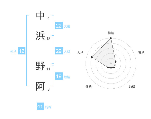 中浜 野阿さんを姓名の画数から五運を鑑定