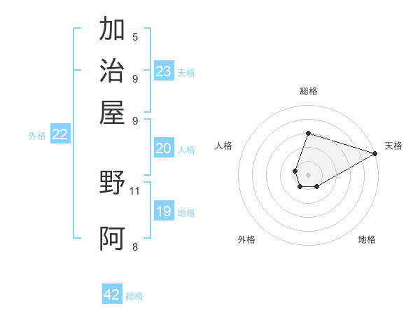 加治屋 野阿さんを姓名の画数から五運を鑑定