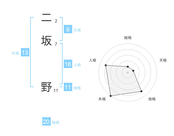 二坂 野さんの外格は13画の5点!