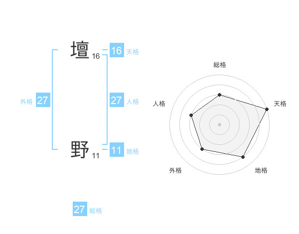壇 野さんの外格は27画の3点!