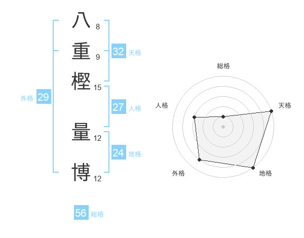 八重樫 量博さんの天格は32画の5点!