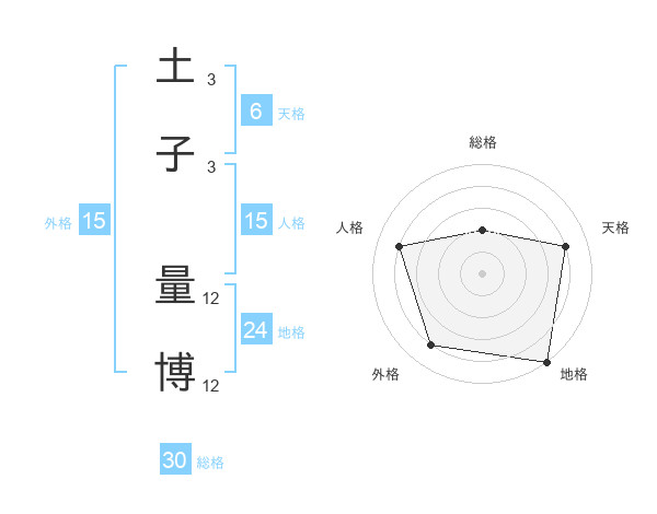 土子 量博さんの総格は30画の2点!