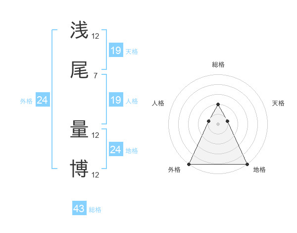 浅尾 量博さんの天格は19画の1点!