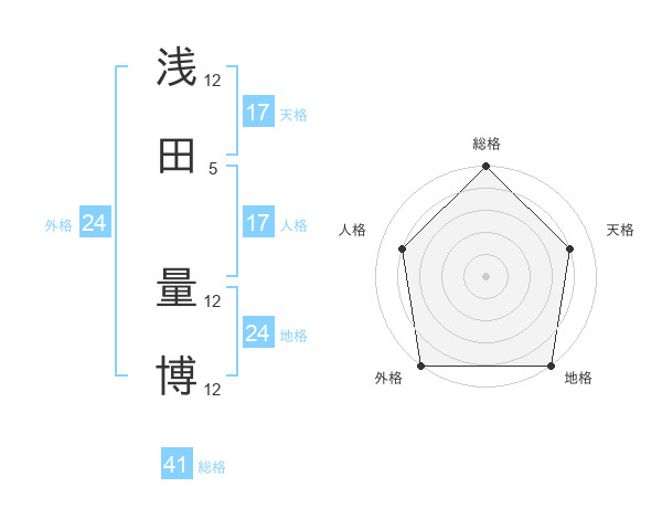 浅田 量博さんの天格は17画の4点!