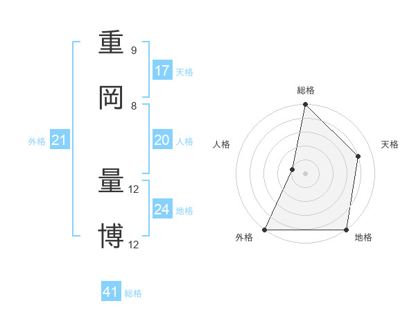 重岡 量博さんの天格は17画の4点!