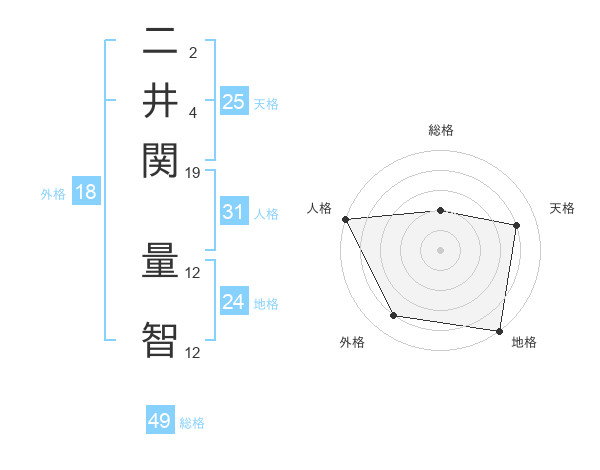 二井関 量智さんの地格は24画の5点!