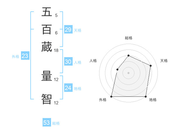 五百蔵 量智さんの総格は53画の3点!