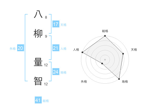 八柳 量智さんの天格は17画の4点!