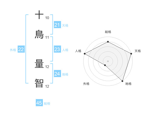 十鳥 量智さんの外格は22画の1点!