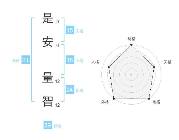 是安 量智さんの外格は21画の5点!