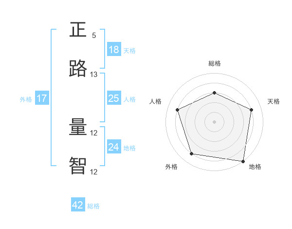 正路 量智さんの地格は24画の5点!