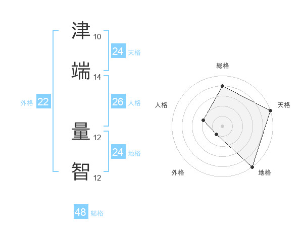 津端 量智さんの天格は24画の5点!