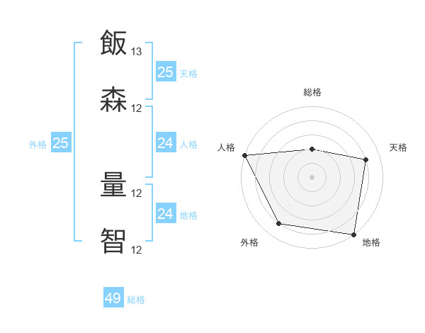 飯森 量智さんの総格は49画の2点!