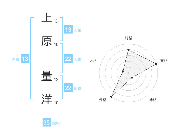 上原 量洋さんの外格は13画の5点!