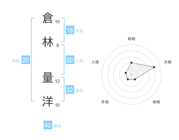 倉林 量洋さんの総格は40画の2点!