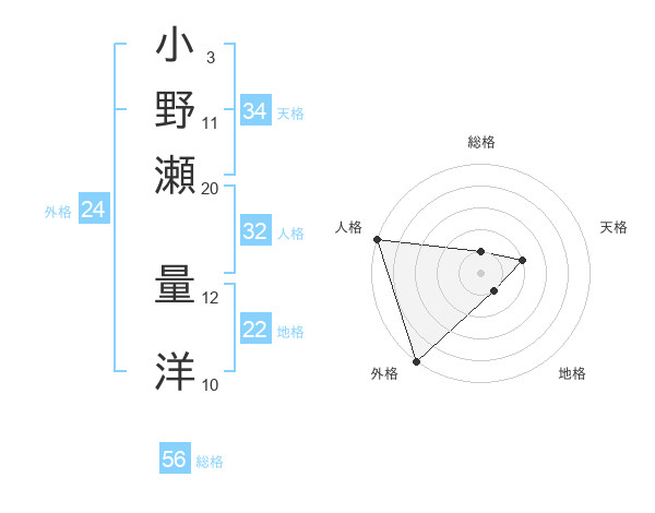 小野瀬 量洋さんを姓名の画数から五運を鑑定