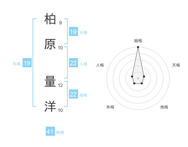 柏原 量洋さんの総格は41画の5点!
