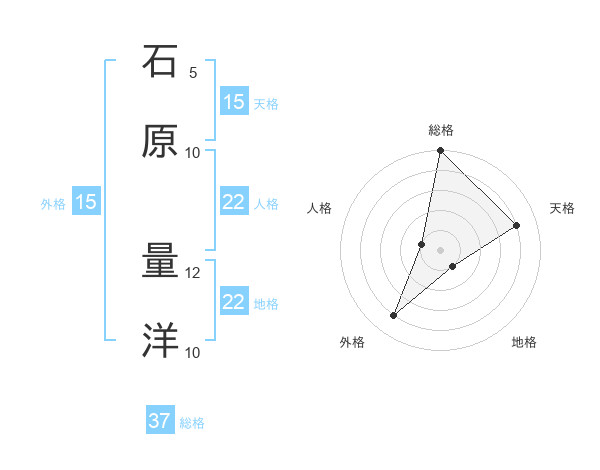 石原 量洋さんの総格は37画の5点!