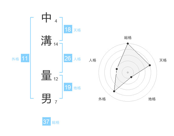 中溝 量男さんの総格は37画の5点!