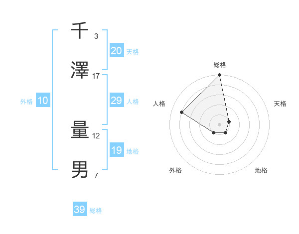 千澤 量男さんの総格は39画の5点!