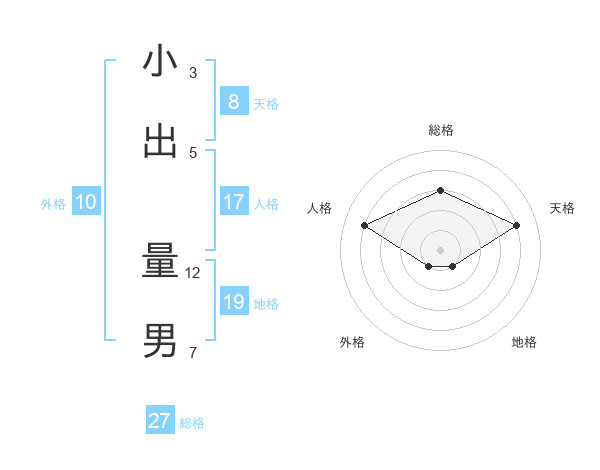 小出 量男さんの天格は8画の4点!