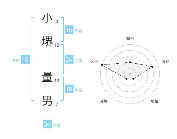 小堺 量男さんの総格は34画の2点!