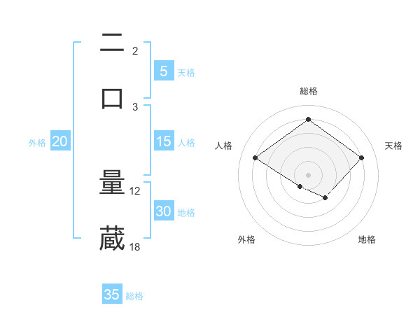 二口 量蔵さんを姓名の画数から五運を鑑定
