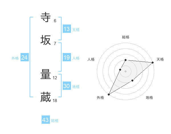 寺坂 量蔵さんの天格は13画の5点!