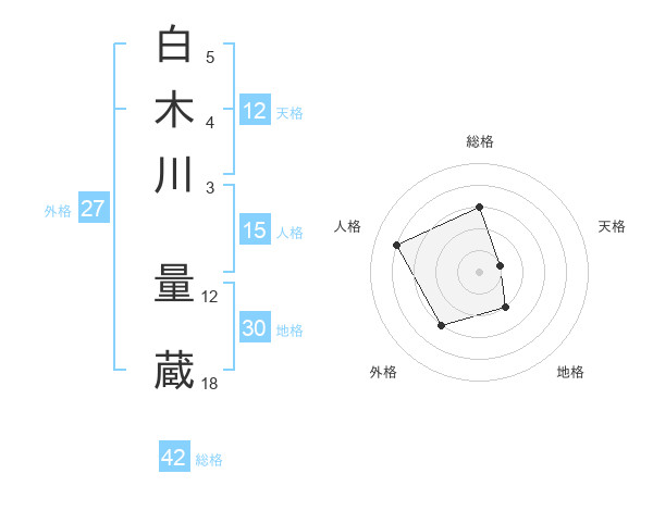 白木川 量蔵さんの総格は42画の3点!