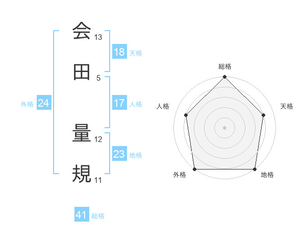 会田 量規さんの総格は41画の5点!