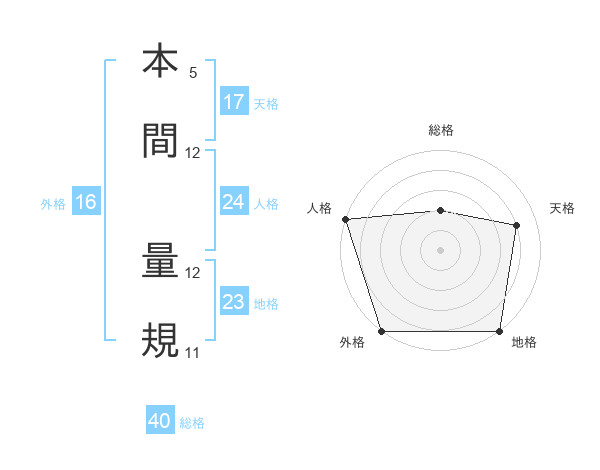 本間 量規さんの天格は17画の4点!