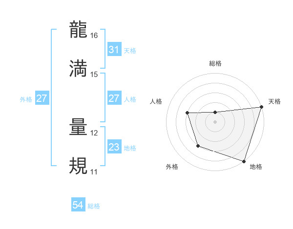 龍満 量規さんの天格は31画の5点!