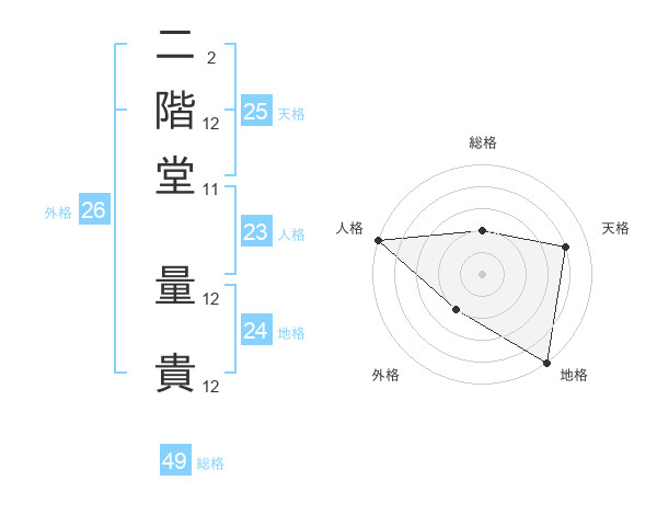 二階堂 量貴さんを姓名の画数から五運を鑑定