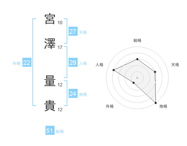 宮澤 量貴さんを姓名の画数から五運を鑑定