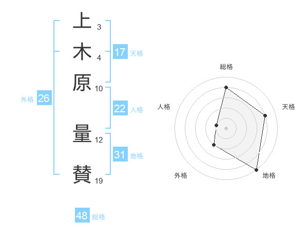上木原 量賛さんを姓名の画数から五運を鑑定