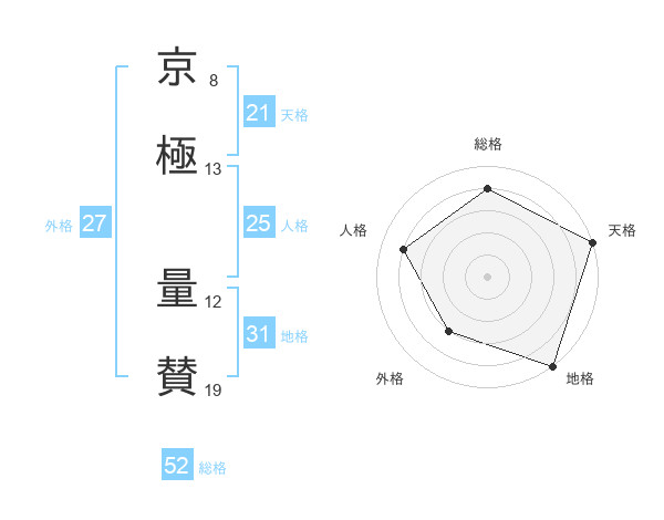 京極 量賛さんの総格は52画の4点!