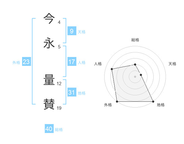 今永 量賛さんの外格は23画の5点!