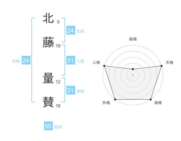 北藤 量賛さんを姓名の画数から五運を鑑定