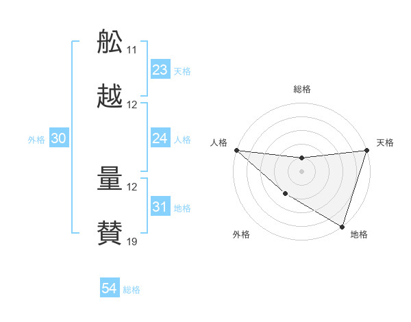 舩越 量賛さんの天格は23画の5点!
