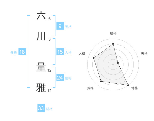 六川 量雅さんの総格は33画の4点!