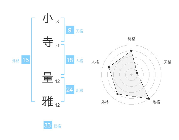 小寺 量雅さんを姓名の画数から五運を鑑定