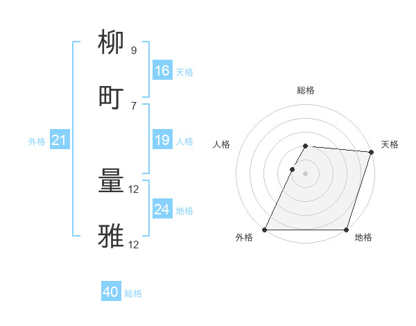柳町 量雅さんの総格は40画の2点